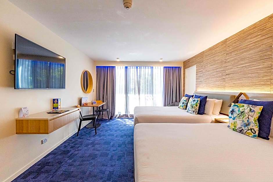 +1 (888) 389-8504Paradise Resort Gold Coast ist ein lebendiges Vier-Sterne-Refugium in Surfers Paradise an der Gold Coast. Es befindet sich in der 122 Ferny Avenue, Surfers Paradise, und liegt etwa 0,5mi vom Stadtzentrum entfernt, sodass Strand und Trubel leicht erreichbar sind. Familienfreundliche Angebote umfassen einen kostenlosen Wasserpark, eine Wasserrutsche, einen Außenpool und ein Kinderbecken für planschende Tage.